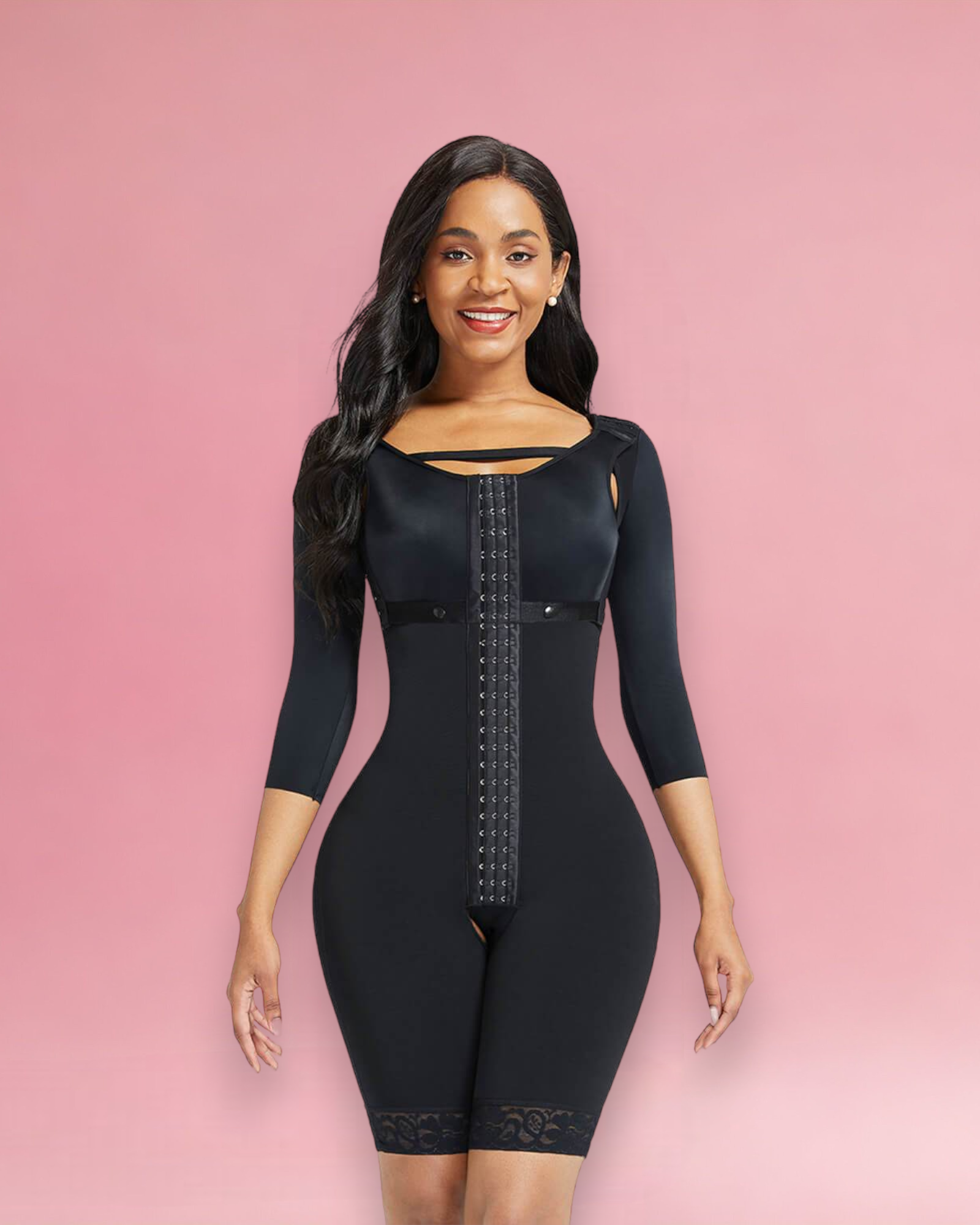It adjusts, shapes, and supports where needed. It features an easy put on-put off design with front zipper and three internal hooks for support and safety.
